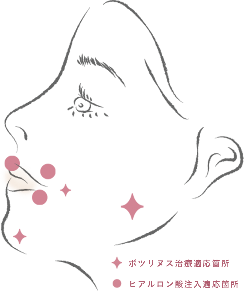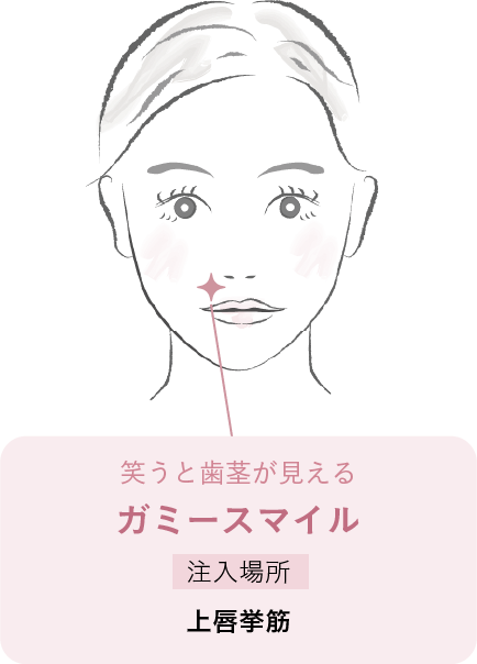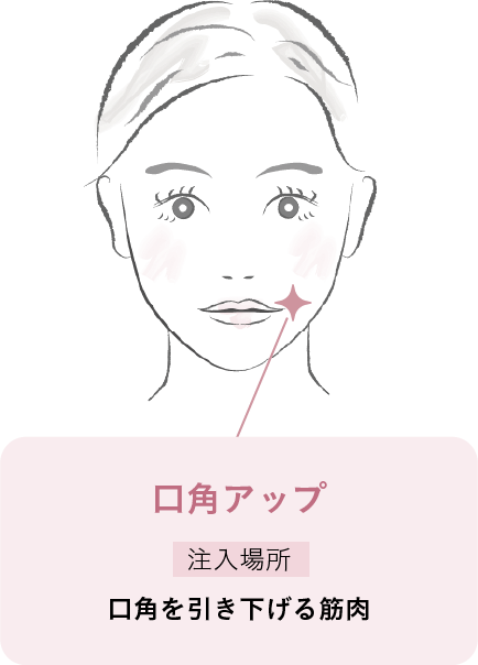 口角が下がってしまっている方に注射すると、口元を下がる筋肉の緊張が和らいで自然と笑顔の口元にする効果も期待できます。
