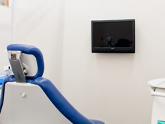 各診療室のチェアの前にはモニターが設置されています。このモニターでは医院案内の他、DVDを閲覧することができます。お子様を飽きさせることなくお待ちいただけます。